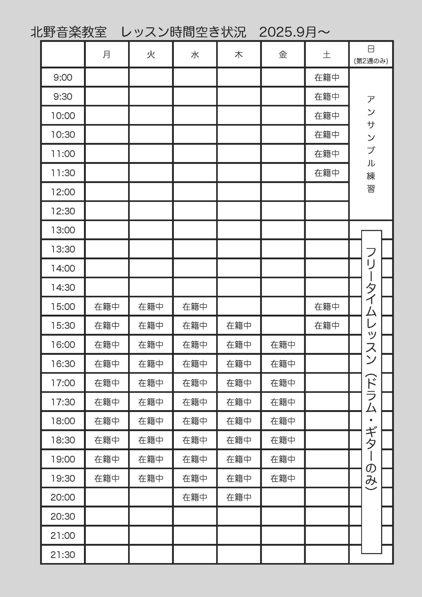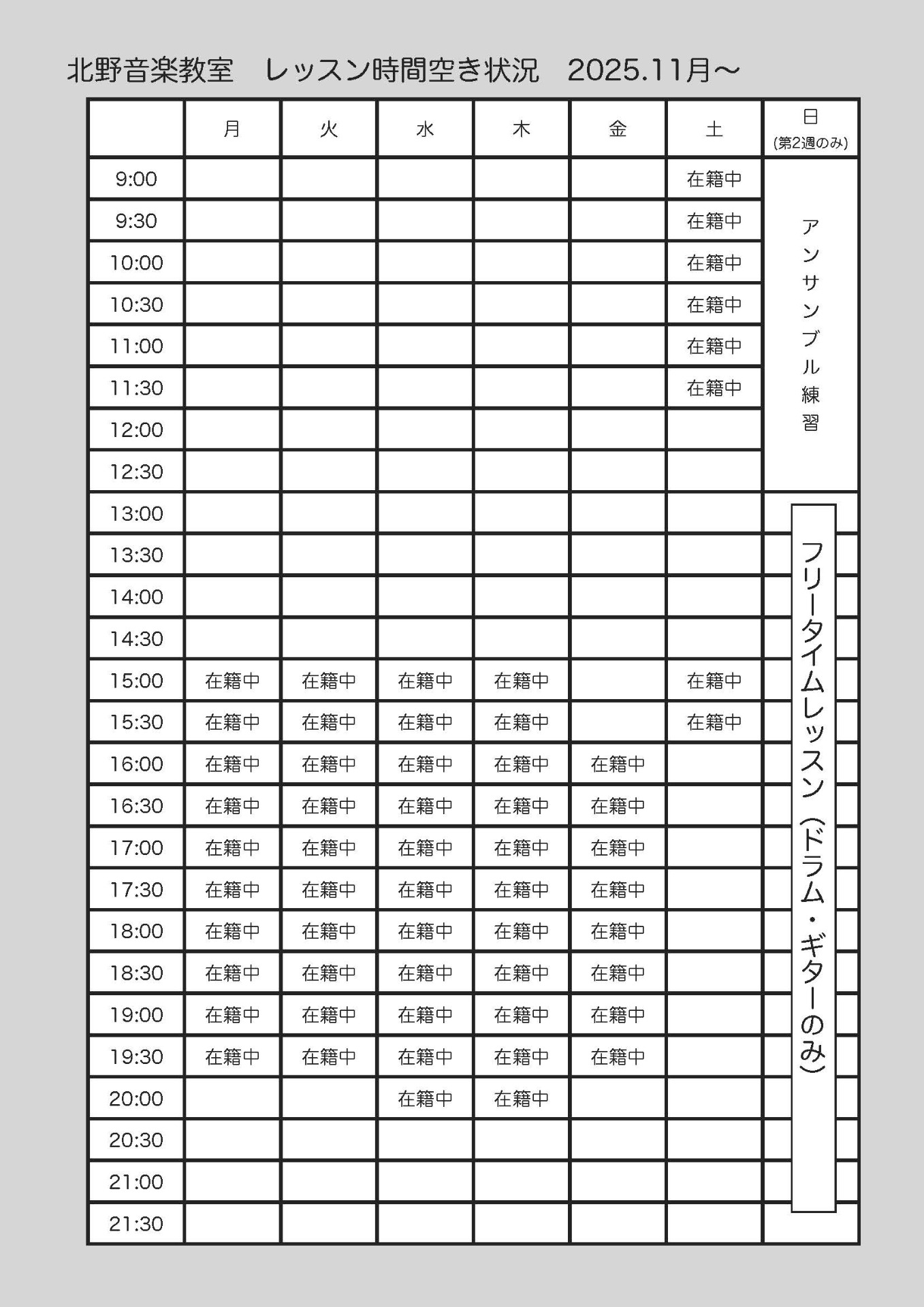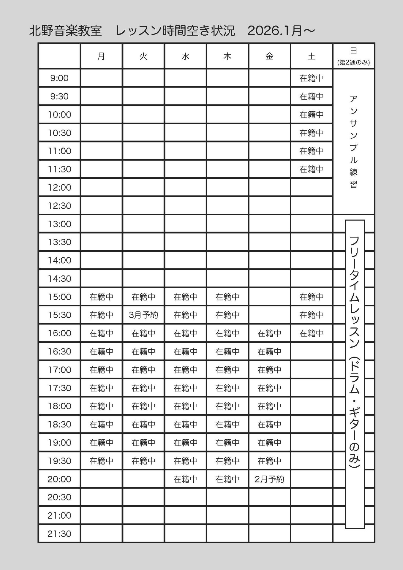 ※毎月第2日曜日のみ 13:00~21:00まで レッスン可能です。(フリーレッスン・ドラム/ギターのみ)