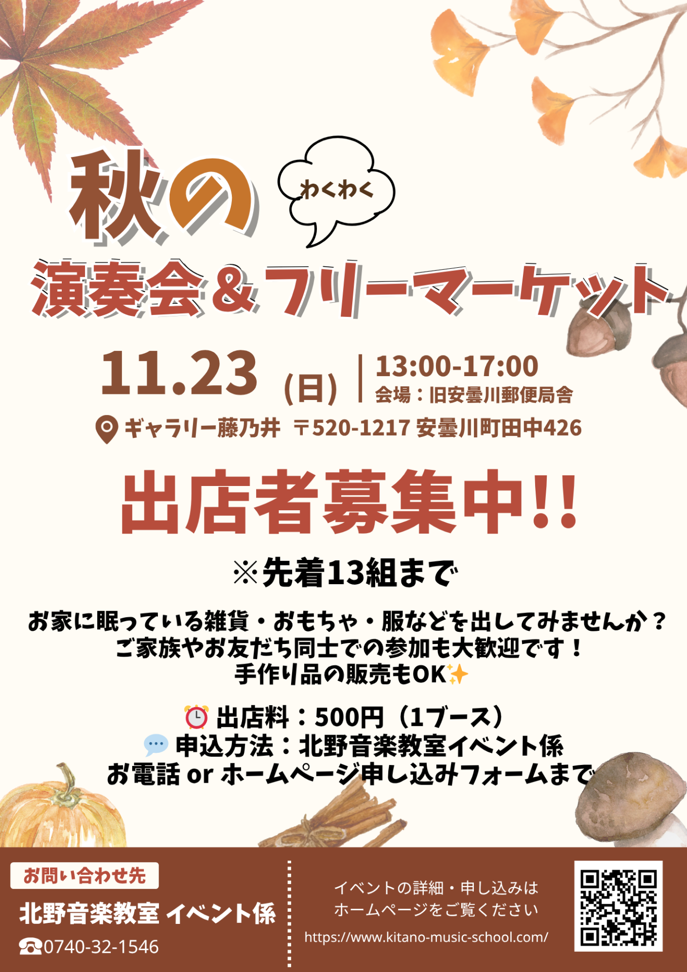 本規約は、「秋のわくわく演奏会&フリーマーケット」(以下「本イベント」)の出店に関するルールを定め、円滑かつ安全な運営を目的とします。